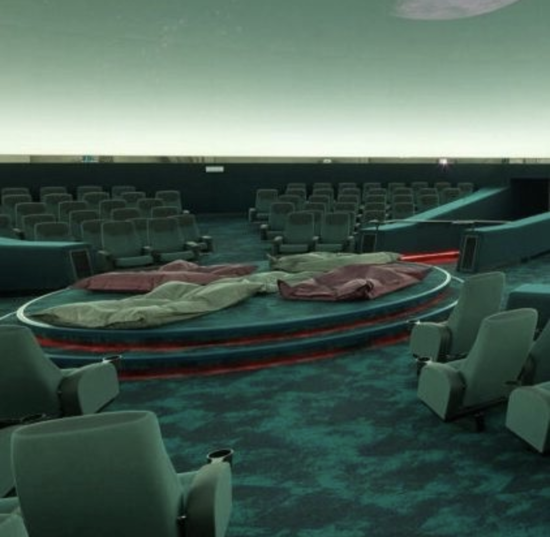 - Both the entrance room/foyer and the theatre are kept quite dim when entering for a show.
