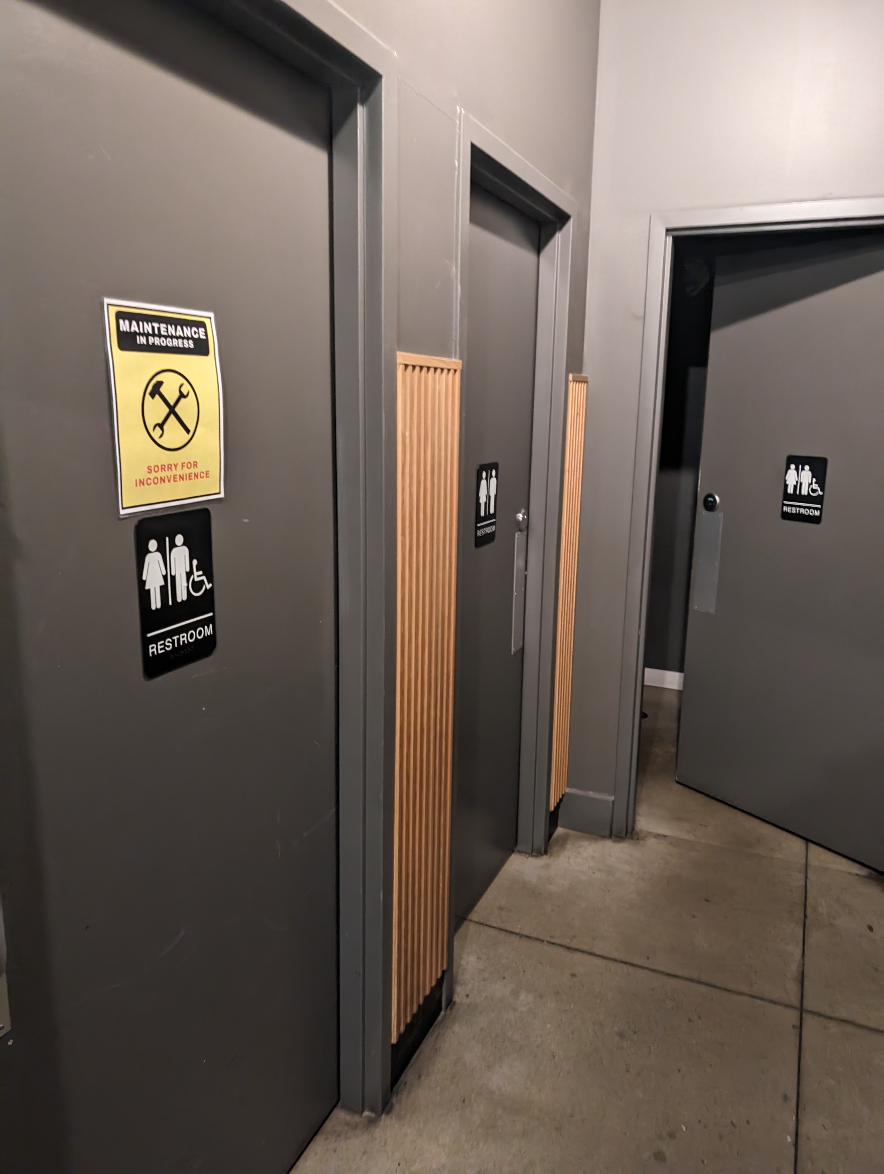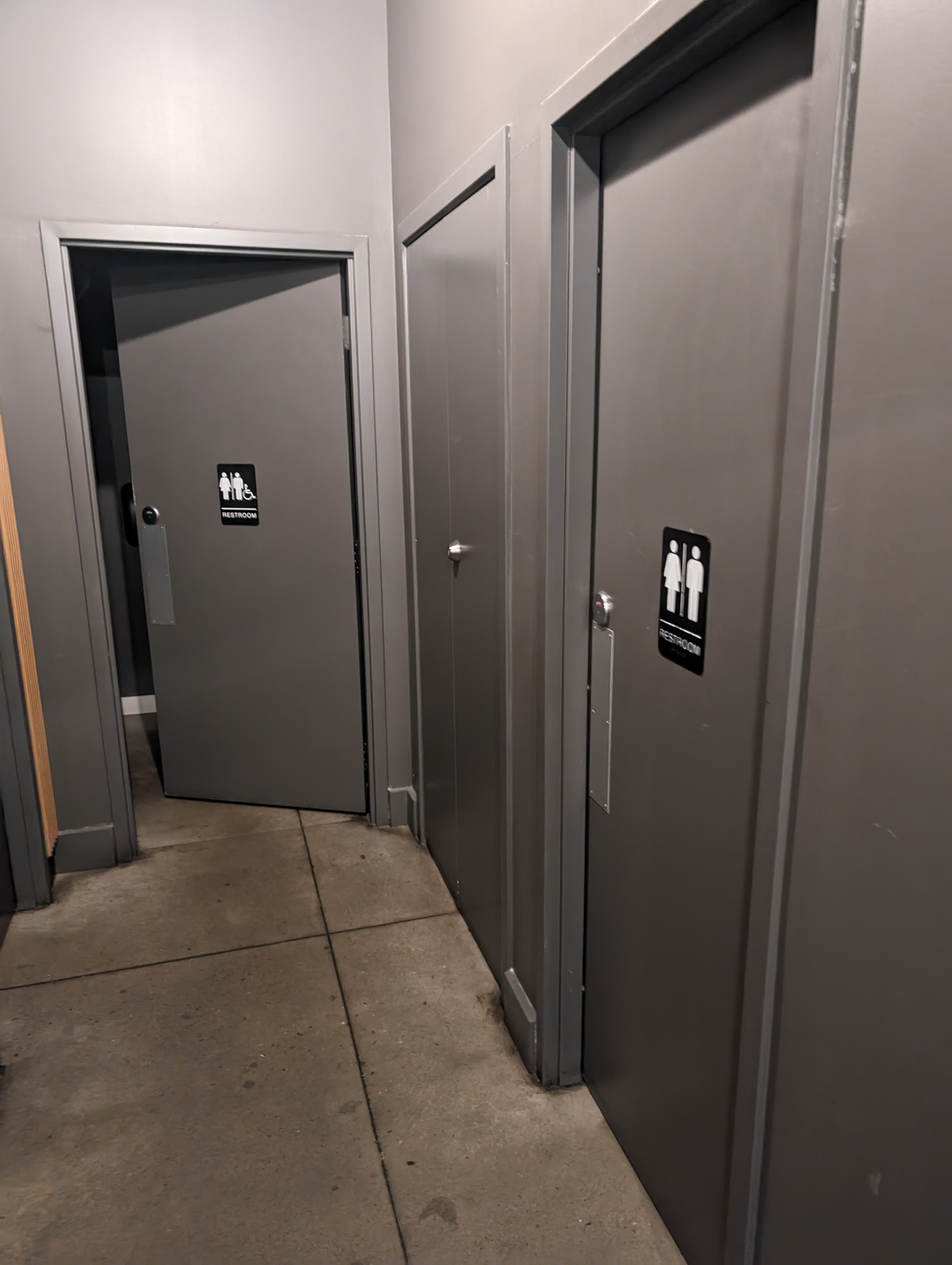 - Four individual, gender-neutral bathrooms, two of which are marked wheelchair accessible