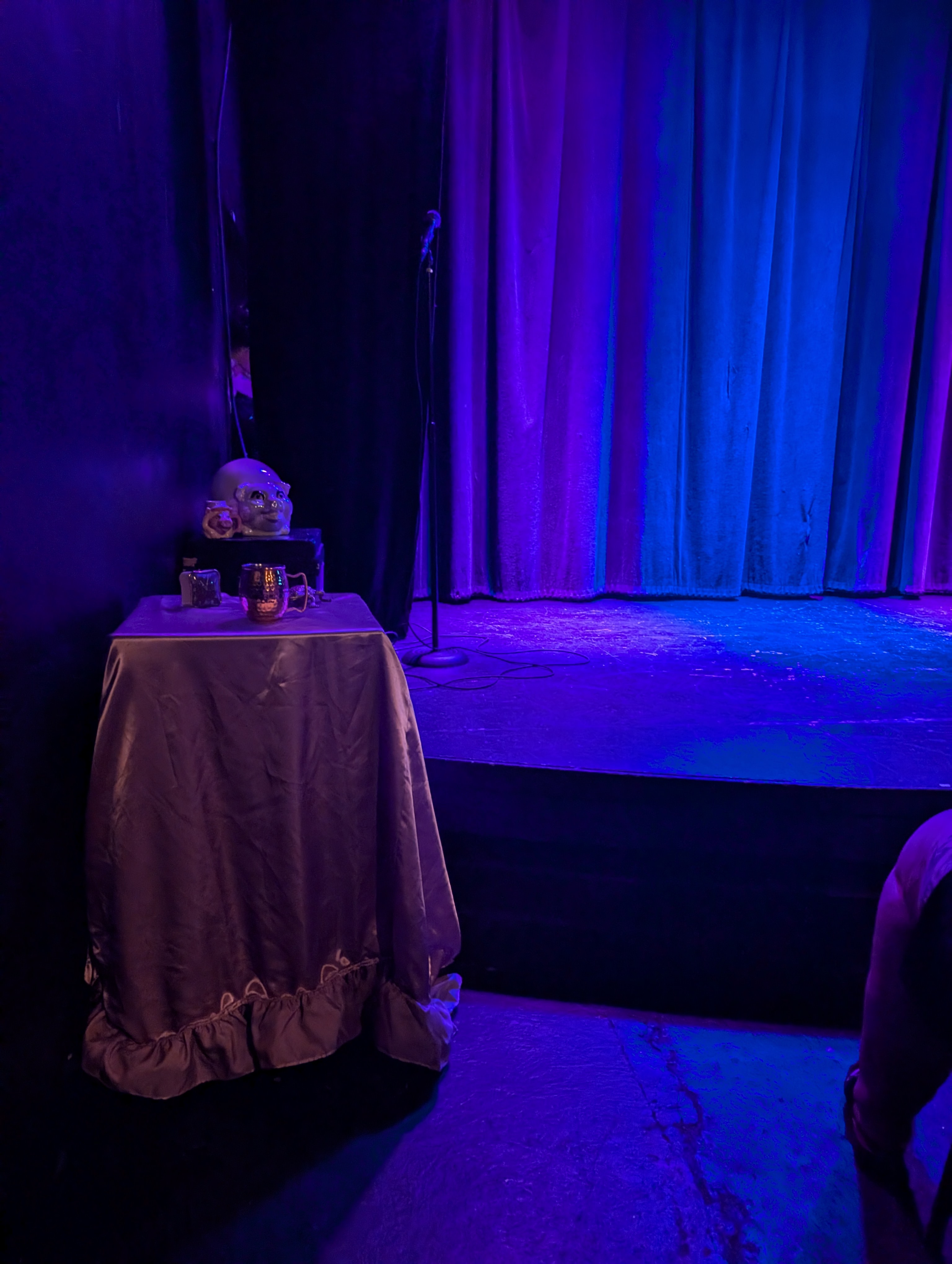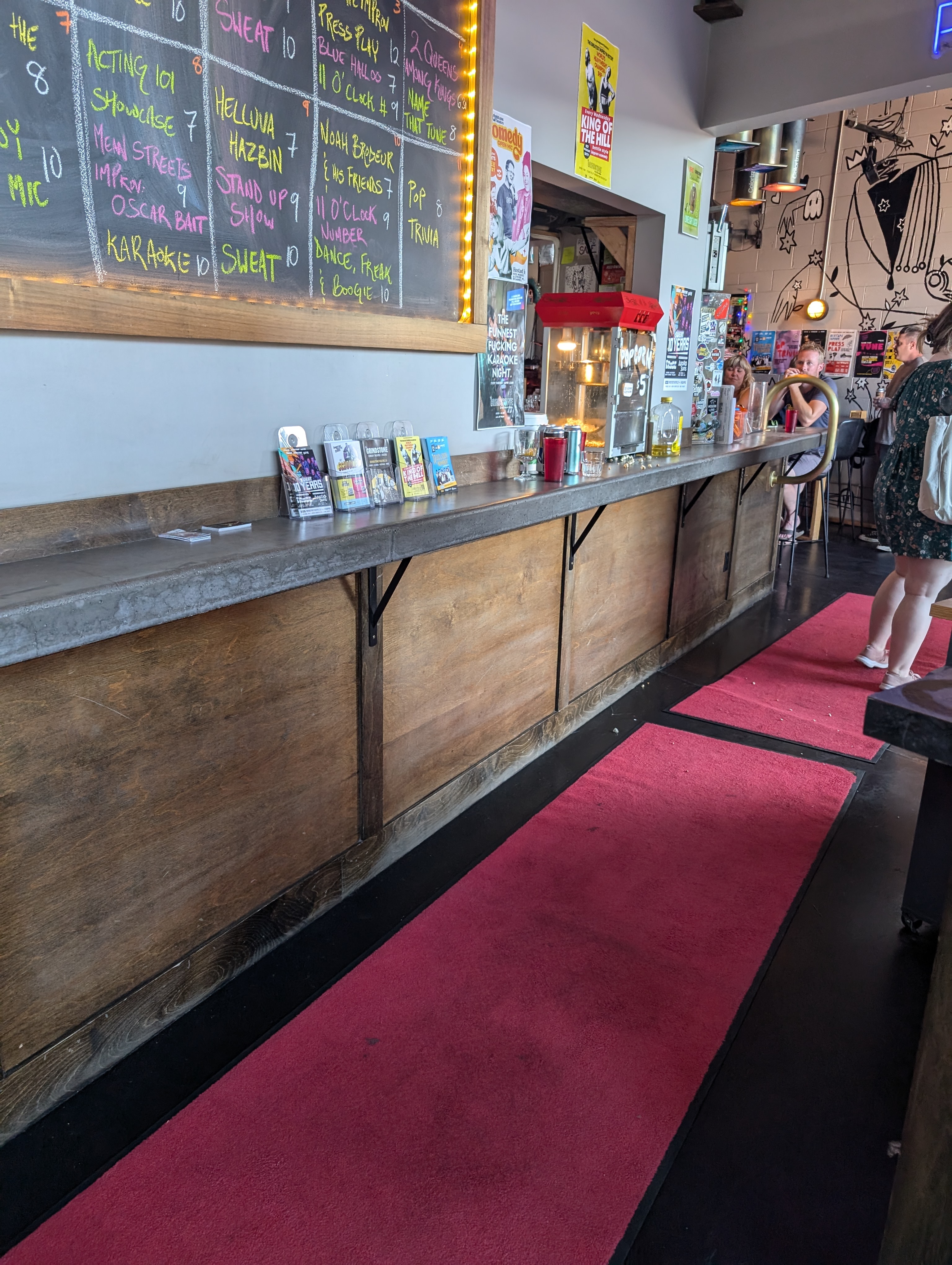 - Theatre is approximately 80 person capacity, but above 60-ish people it is standing-room-only.
