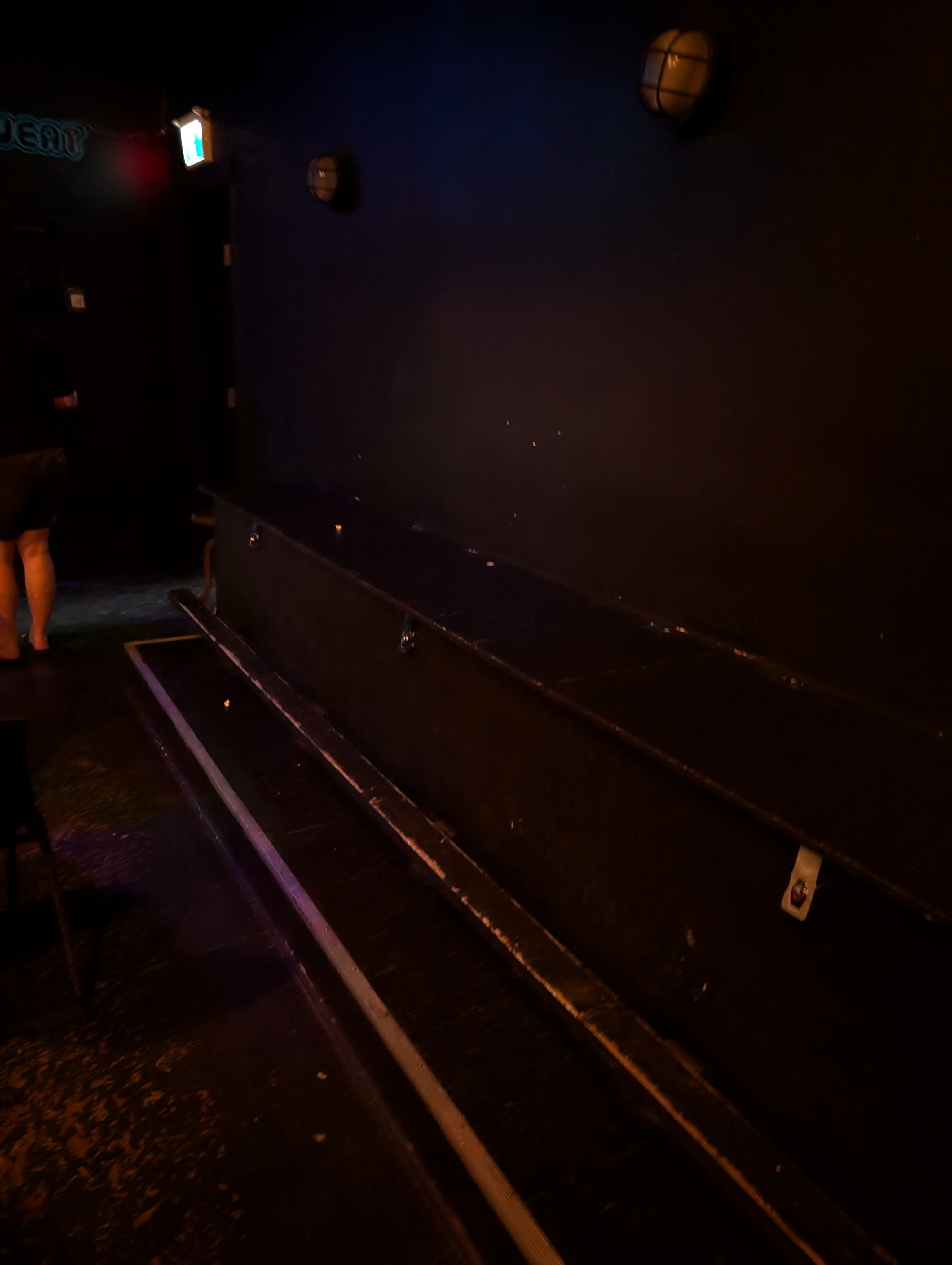- Long wooden benches along one side wall and the back wall are 17″ depth and are slightly raised (require a bit of a step up)